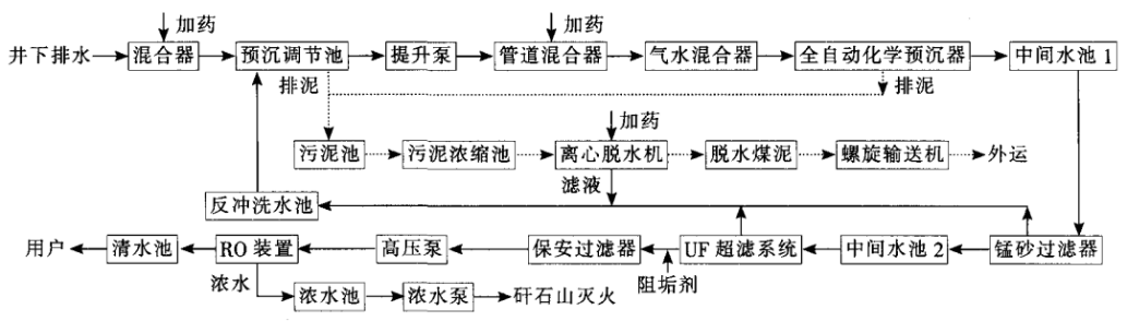 礦井水常見深度處理工藝,如下: